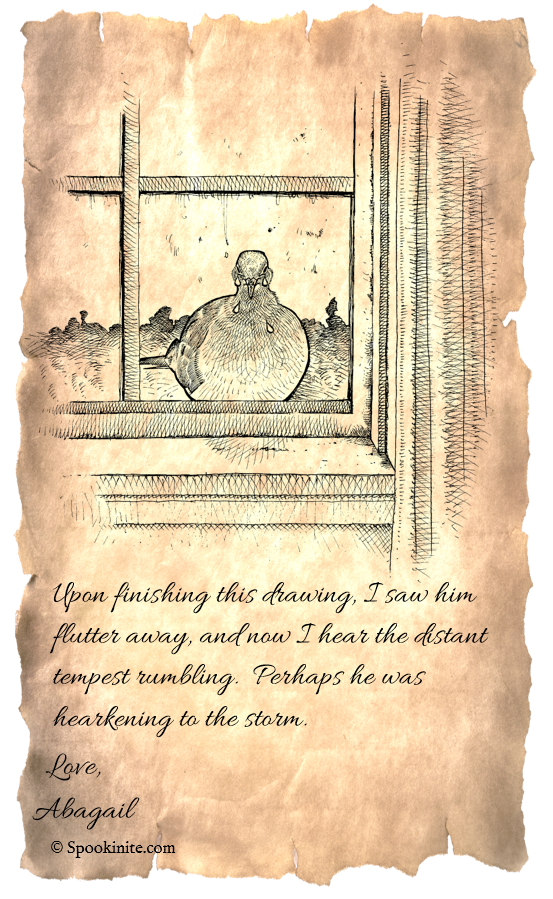 Upon finishing this drawing, I saw him flutter away, and now I hear the distant tempest rumbling. Perhaps he was hearkening to the storm.